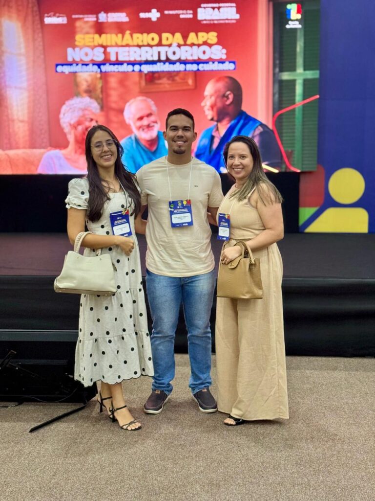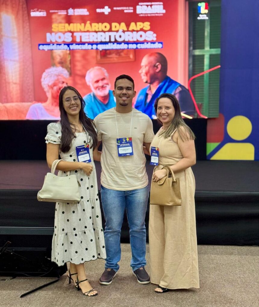 A cidade de Mari esteve representada pela equipe municipal de saúde, composta por Elias (Gerente da Atenção Básica), Sonysa (Gerente da Saúde Bucal) e Caroline (Coordenadora do Centro de Especialidades Odontológicas – CEO).