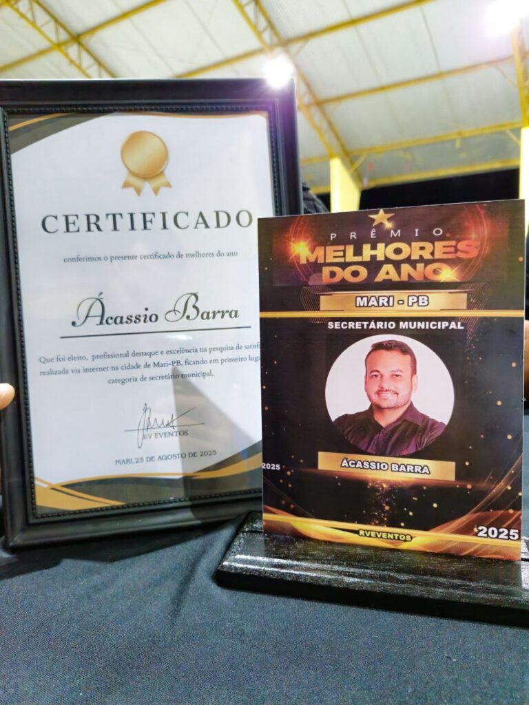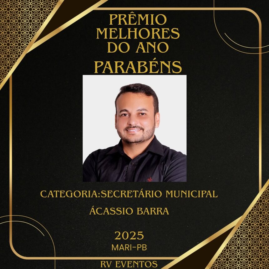 O Chefe de Gabinete da Prefeitura de Mari, João Acácio, mais conhecido como Acássio Barra, foi homenageado como Melhor Secretário Municipal de 2025. no Prêmio Melhores do Ano de Mari-PB, realizado pela RV Show e Eventos a partir de pesquisa via internet. O reconhecimento destacou o compromisso, o trabalho e a dedicação do gestor ao lado da prefeita Lucinha da Saúde.