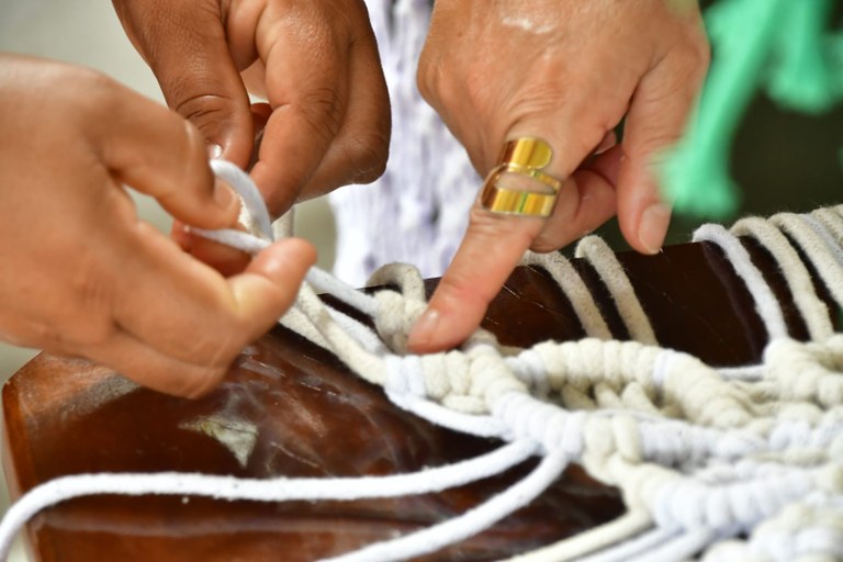As aulas foram ministradas por Maria José Gerônimo, artesã da Casa de Economia Solidária de Araruna, com oito anos de experiência no macramê. Para ela, a oficina foi além da técnica: “Esse momento eleva a autoestima das mulheres, gera convivência social e abre portas comerciais, já que o macramê está em alta”.