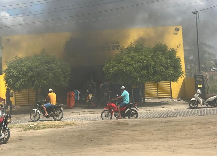 Um incêndio atingiu uma loja de variedades na cidade de Gurinhém, no Vale do Paraíba, na tarde desta segunda-feira (20 de outubro).