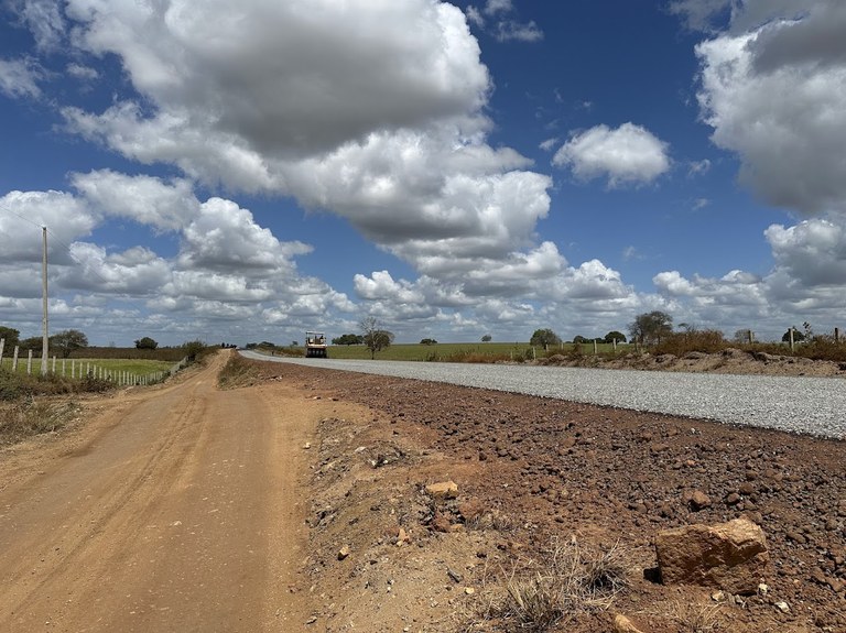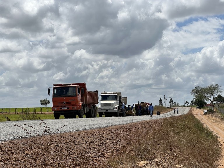 De acordo com o engenheiro Juvenal Pereira, gestor da obra, as equipes estão avançando com os serviços de sub-base, base, imprimação e tratamento superficial duplo (TSD).