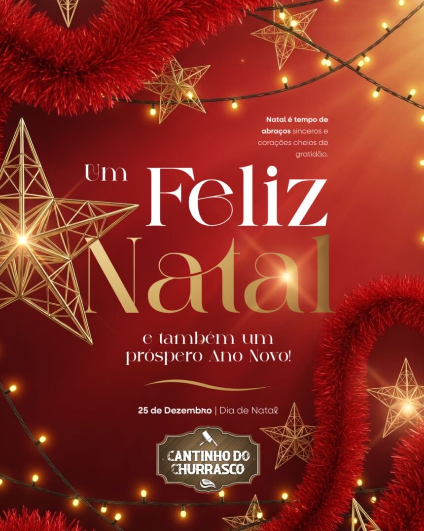 Que o espírito do Natal encha cada lar de amor, paz, fé e gratidão, e que as Boas Festas sejam marcadas por sorrisos, união e momentos inesquecíveis ao lado de quem mais importa.