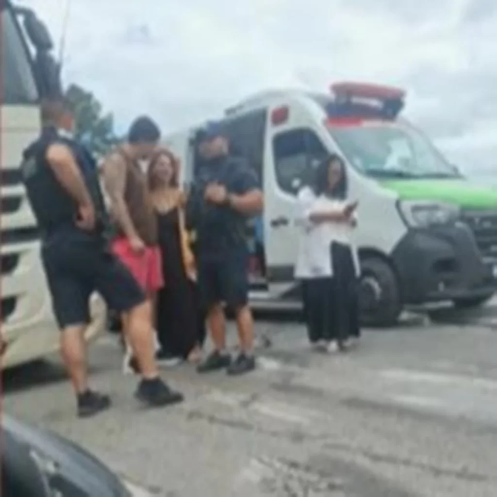 Fotos que circulam nas redes sociais mostram o momento em que ele sai de uma ambulância do Sistema Único de Saúde (SUS) com os pés amarrados para fumar na beira da estrada enquanto um acidente com carreta congestiona a via a caminho da internação. Veja: