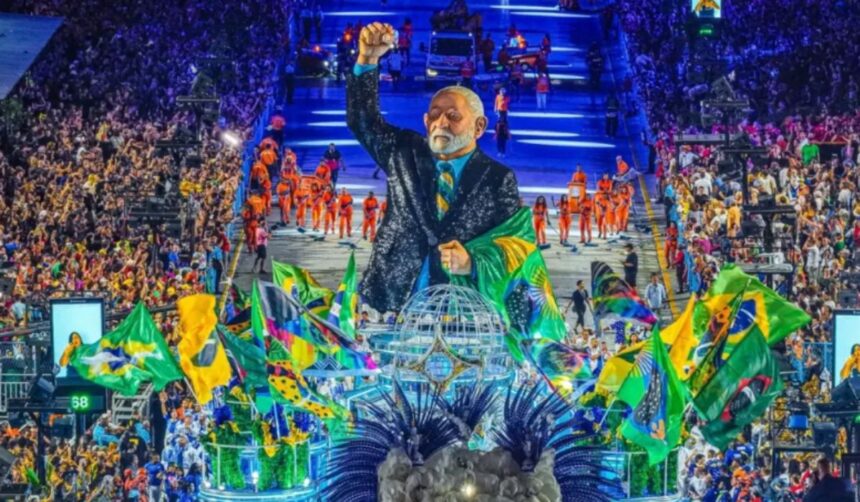 O samba-enredo trouxe referências à trajetória política e social do petista, incluindo o jingle clássico lançado na primeira disputa à Presidência, em 1989: “Olê, olê, olê, olá, vai passar nessa avenida mais um samba popular; olê, olê, olê, olá, Lula, Lula”.