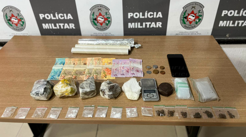 A equipe realizava o policiamento na comunidade das Laranjeiras, no bairro do José Américo, quando visualizou um indivíduo em atitude suspeita, tentando esconder uma sacola por baixo da camisa. Na abordagem, foram encontradas drogas, como: maconha e cocaína, além de uma balança de precisão e dinheiro, em espécie.