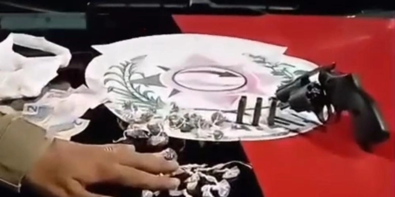 Durante a ação, os policiais apreenderam um revólver calibre 38 com três munições intactas, além de diversas porções de substâncias semelhantes à maconha e ao crack, bem como uma quantia em dinheiro trocado.