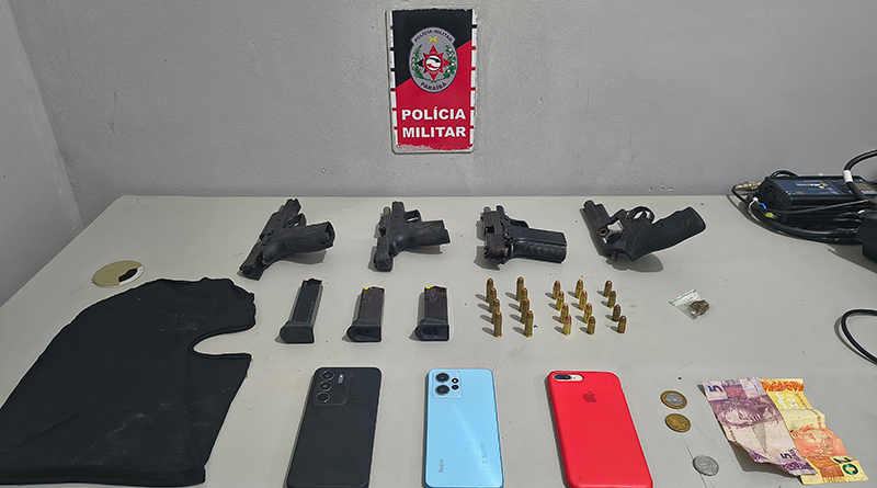 Durante a fuga, o veículo foi interceptado e os criminosos capturados. Com o grupo, as equipes apreenderam 03 pistolas, 01 revólver, munições, balaclavas, vestimentas e aparelhos celulares.