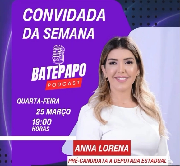 A ex-prefeita de Monteiro e pré-candidata a deputada estadual, Anna Lorena de Farias Leite Nóbrega, será a convidada da semana do BatePapo Podcast, que acontece nesta quarta-feira (25), às 19h, com transmissão ao vivo pela internet.
