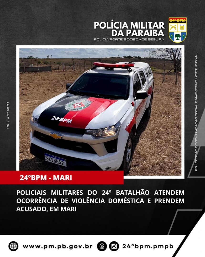 Policiais militares do 24º Batalhão atenderam, nesta semana, uma ocorrência de violência doméstica no Loteamento dos Funcionários, no município de Mari, na Zona da Mata paraibana.
