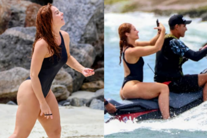Paolla Oliveira é flagrada gravando série portuguesa em praia do Rio