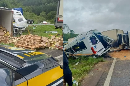 Seis pessoas morrem após carreta tombar sobre van de passageiros