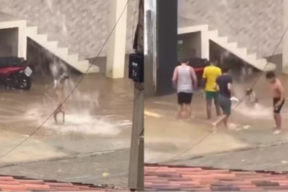 Vídeo de crianças e cachorro brincando na chuva em Caicó viraliza nas redes sociais