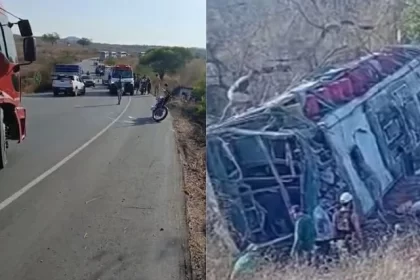 Ônibus com 60 passageiros capota em rodovia e deixa feridos