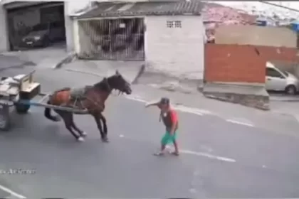 Cavalo escorrega em ladeira e cai durante transporte em carroça em Campina Grande