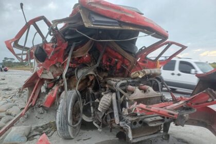 Acidente entre dois caminhões deixa motorista ferido e causa lentidão na BR-230, em Santa Rita