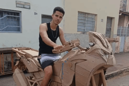 Estudante de física cria réplica de moto usando papelão na PB: ‘Para inspirar outras pessoas’