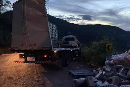 Caminhão tomba na Serra do Teixeira na tarde desta segunda-feira (6)