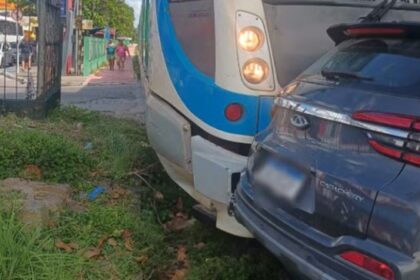 Carro avança via férrea e é atingido por VLT em passagem de nível de Bayeux