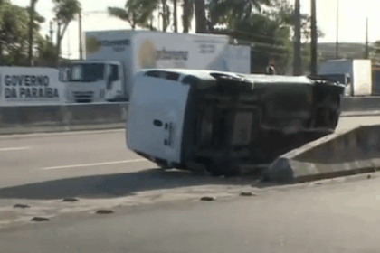 Veículo capota após bater em mureta na BR-230, em João Pessoa