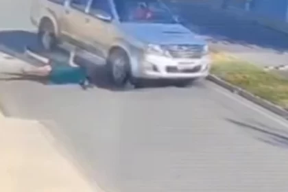 Vídeo: mulher cai em asfalto e quase morre atropelada por caminhonete, em Pombal